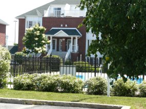 Comme un petit village, les unités de condo sont regroupées en U autour de l'espace commun dont la piscine chauffée est le centre d'intérêt